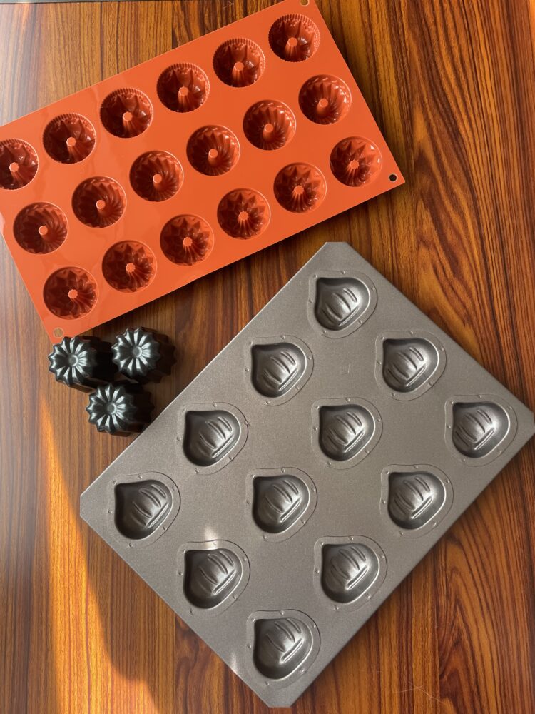 写真は、ふたくちで食べられるサイズのカヌレ型、クグロフ型、栗の型。